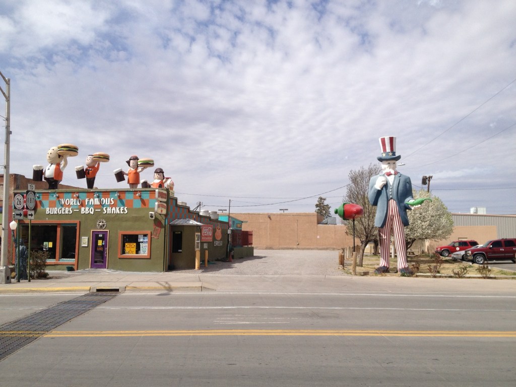 He looks around at the horizon of trailers.