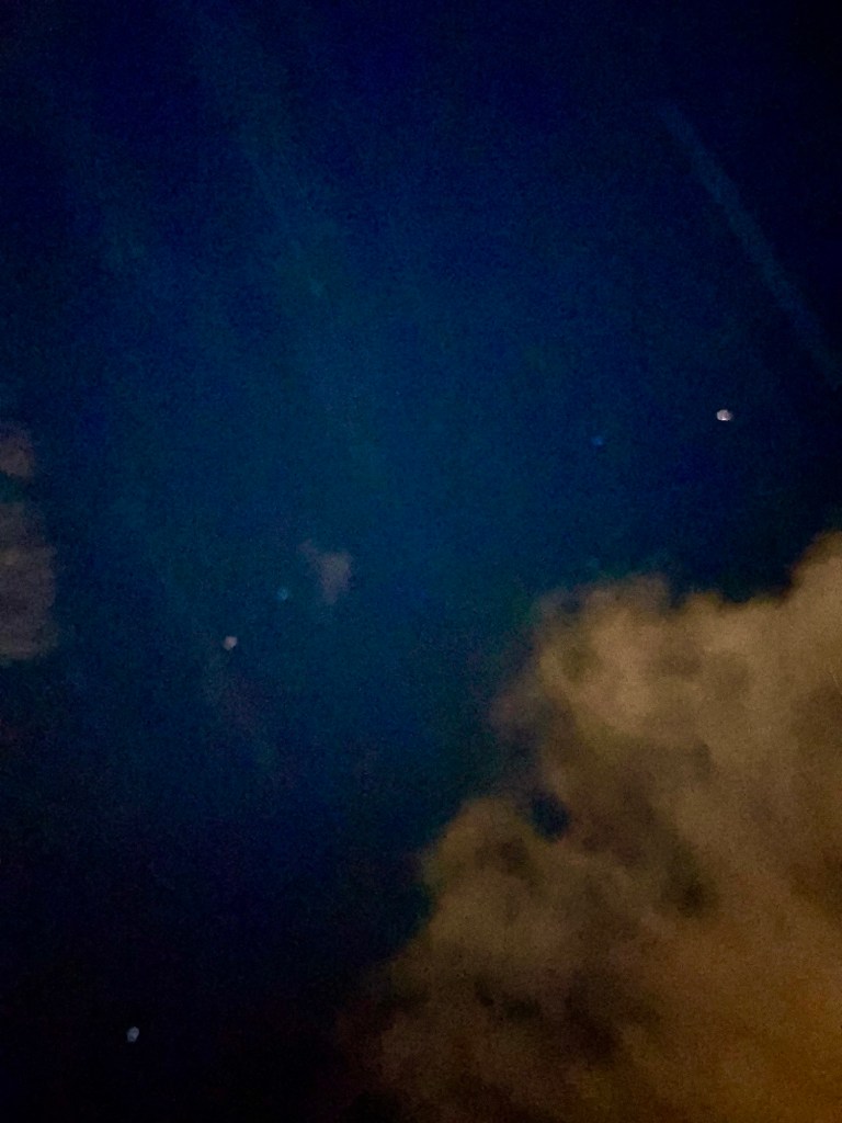 slowly rising through velvety dusk.